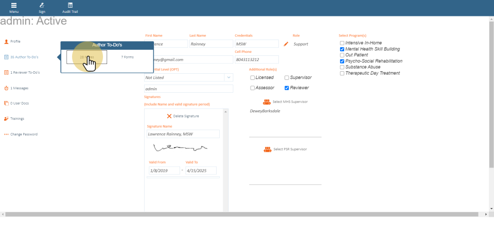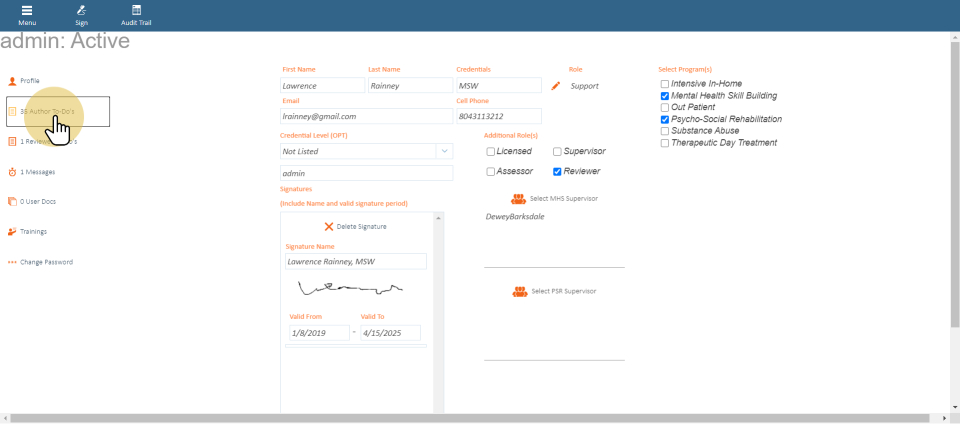 Author To-Do's list documents created by the User that are in the "Incomplete" and "Rejected" status.